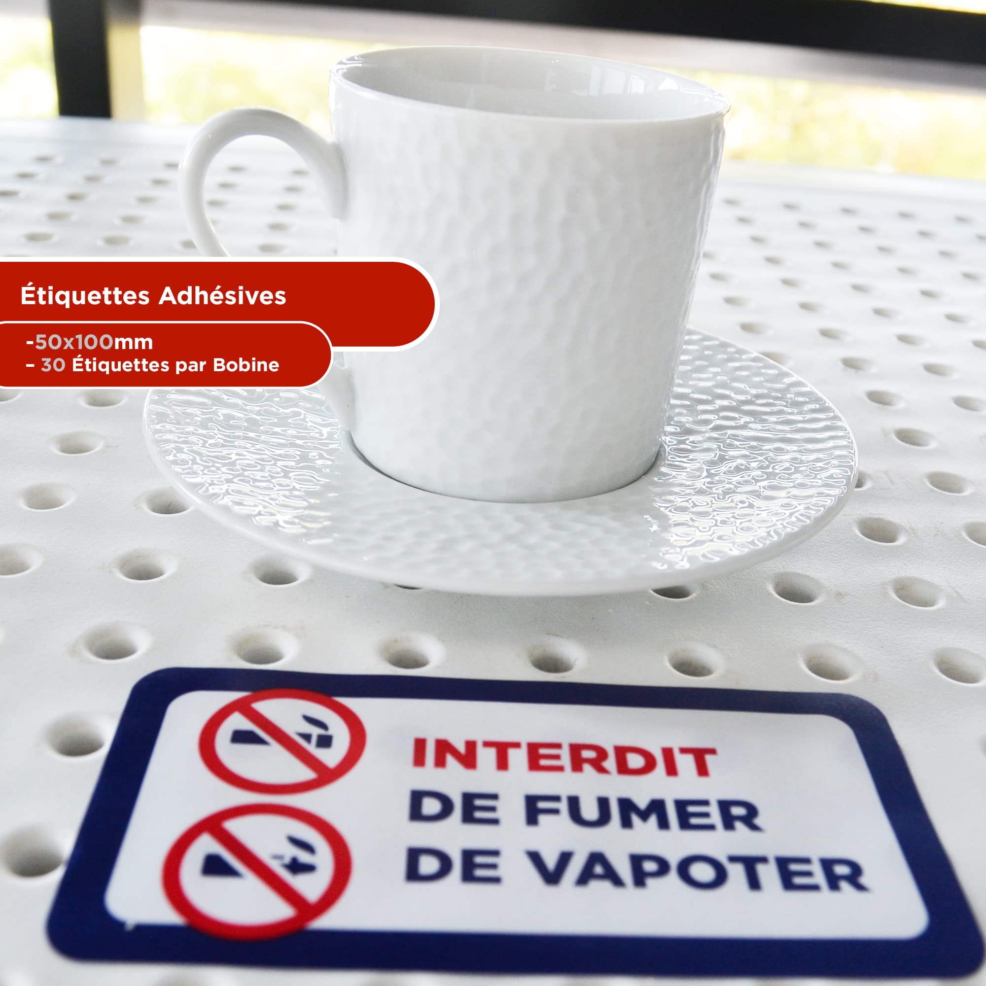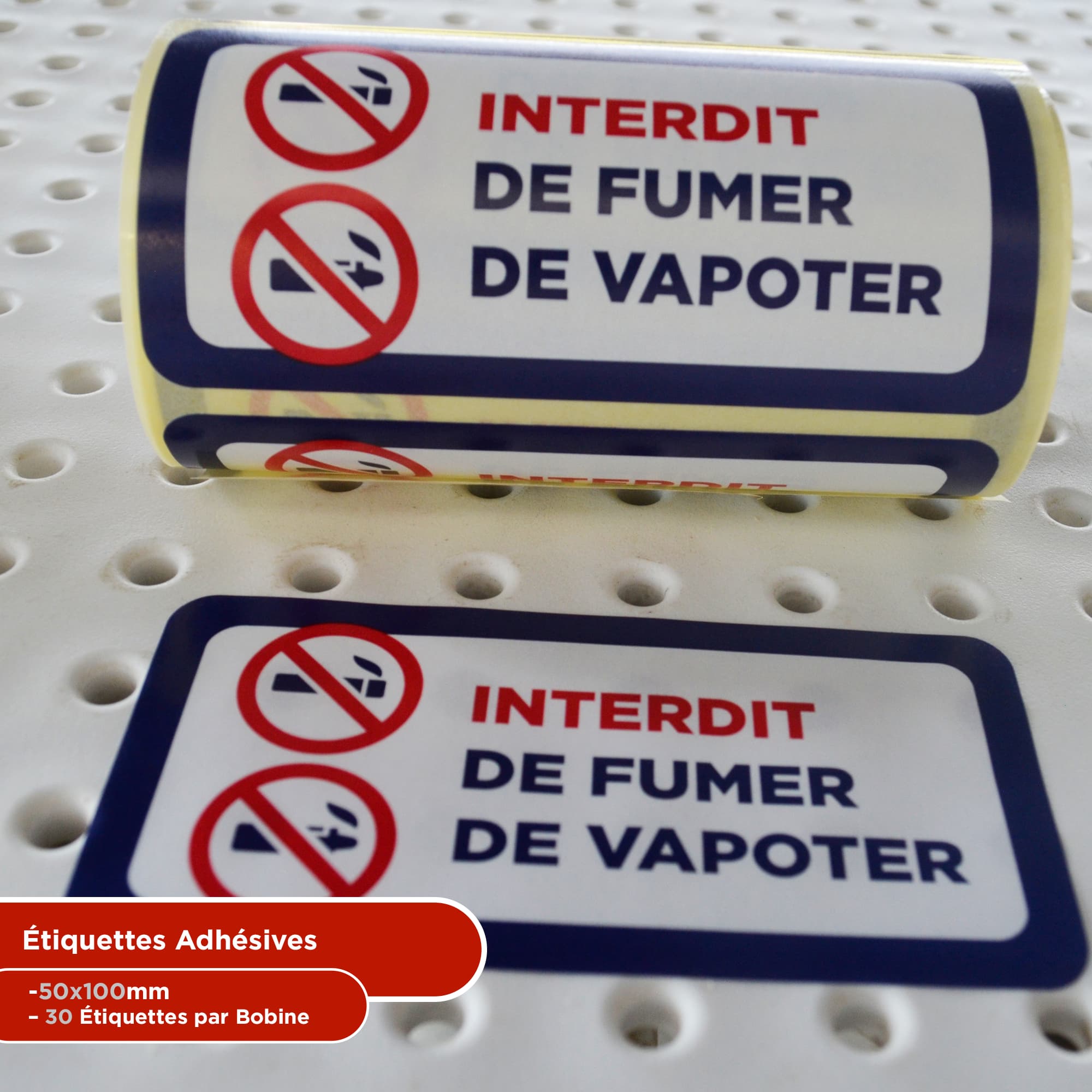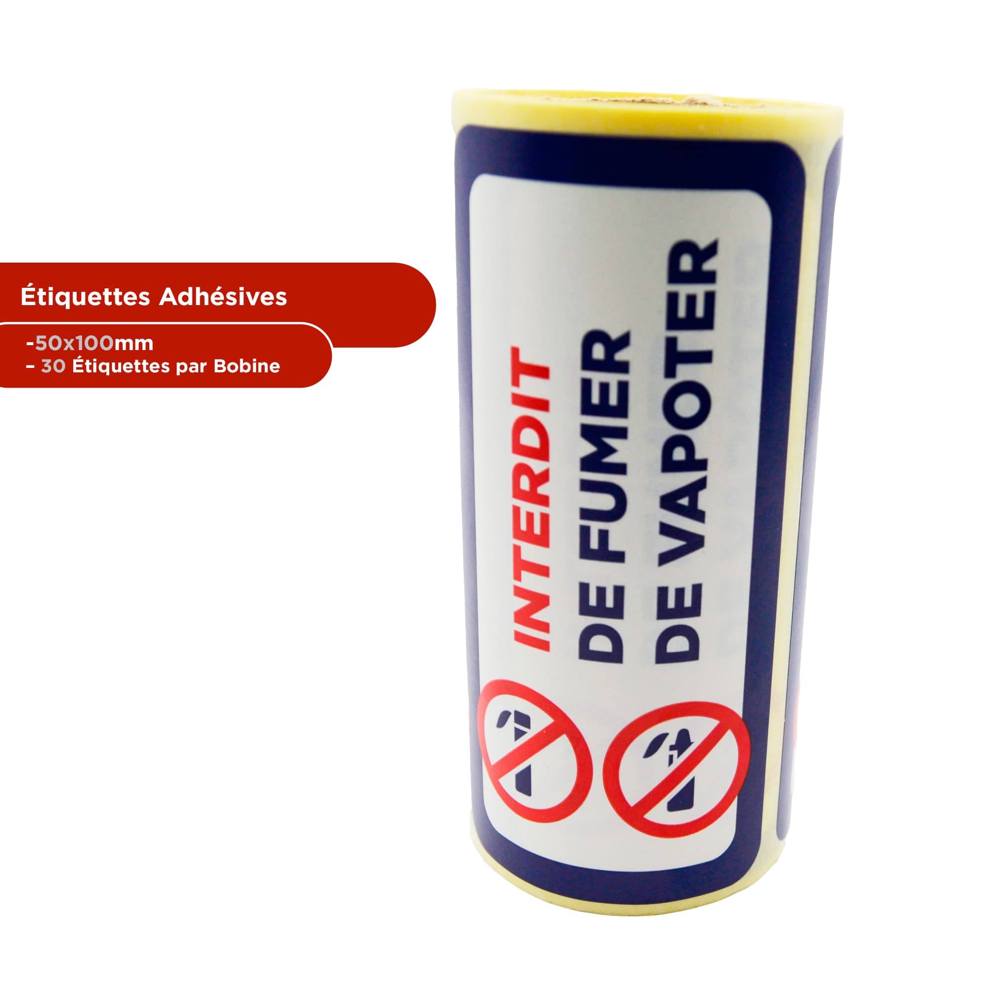Étiquettes Adhésives “Interdit de Fumer et Vapoter” ( 50x100mm)